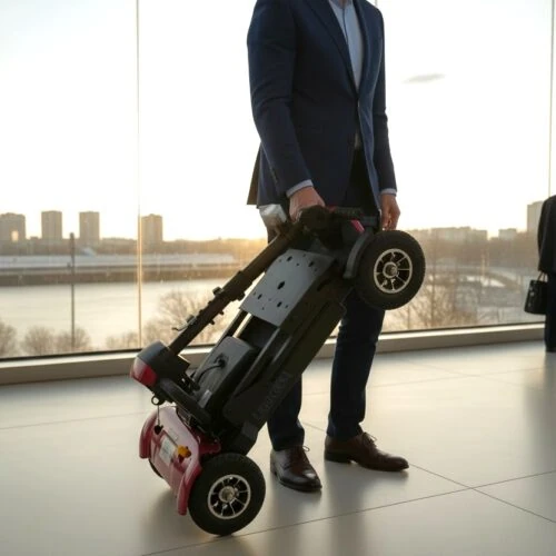 - Si tienes que cargar el scooter al maletero sin ayuda, extrae primero la batería de litio antes de plegar el chasis. Con 24,9 kg de estructura sin batería, la mayoría de personas puede manejarlo sin esfuerzo. Metes la batería por separado y listo. Con la versión gel no es posible hacer esto, ya que las baterías van integradas en el chasis.