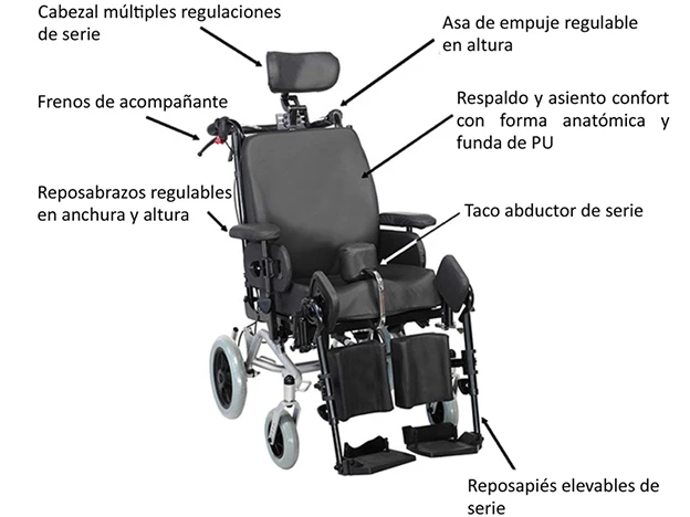 Silla de ruedas basculante Serena 2 para mayor confort y funcionalidad.